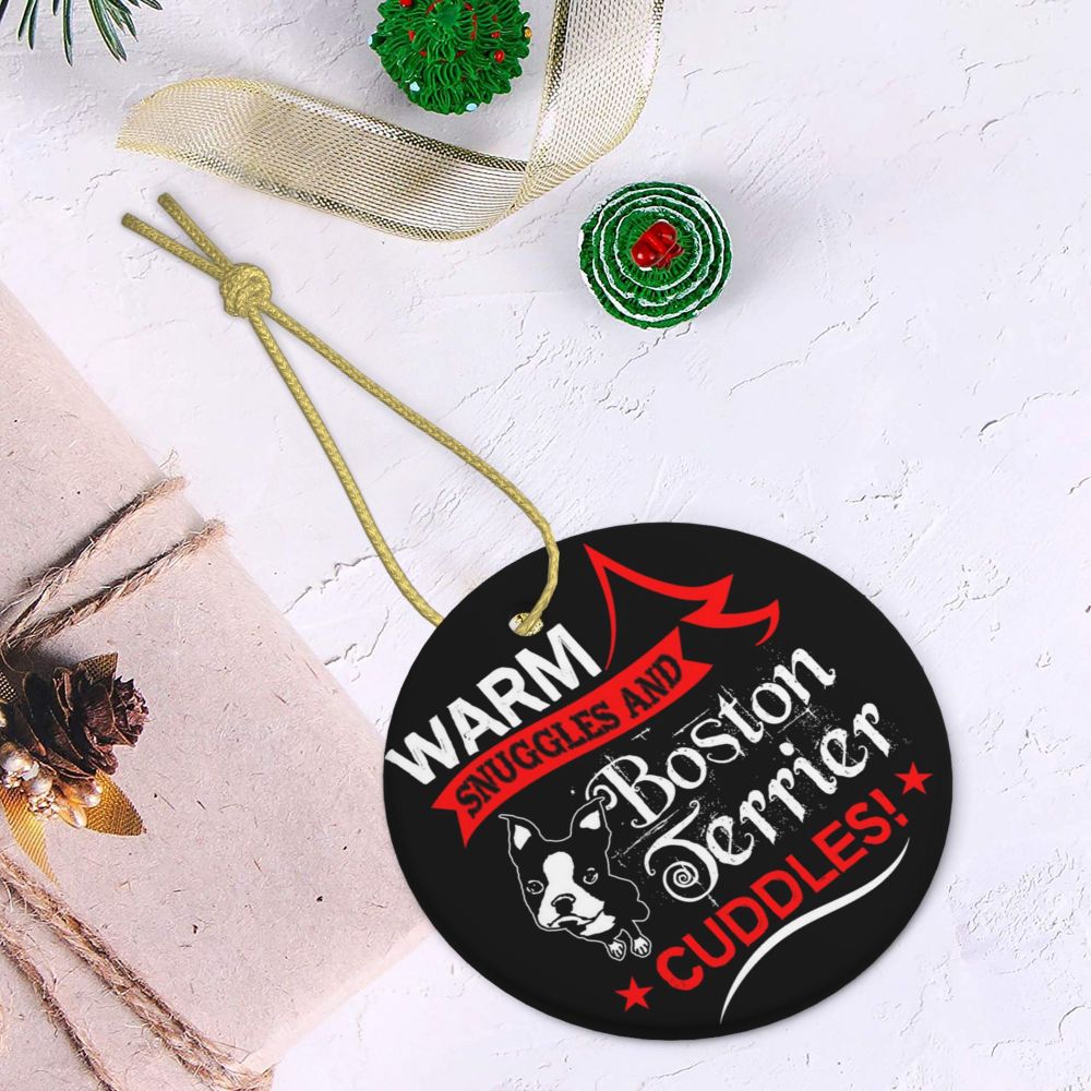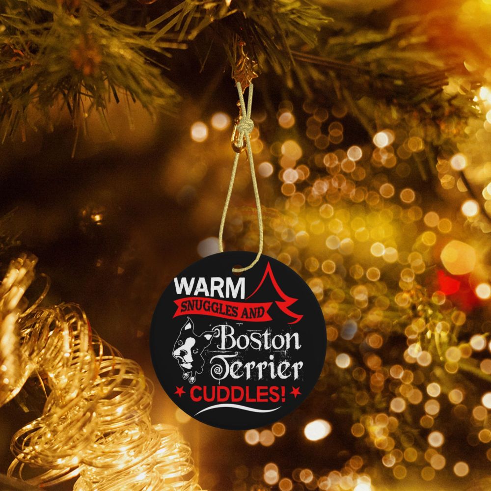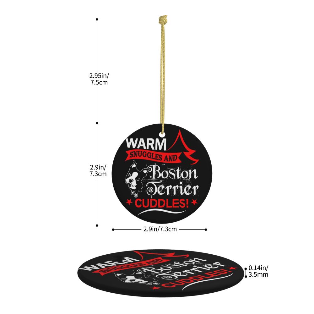 Christmas - Boston Terrier Christmas Round Ceramic hanging Holiday Decor Customized Pattern